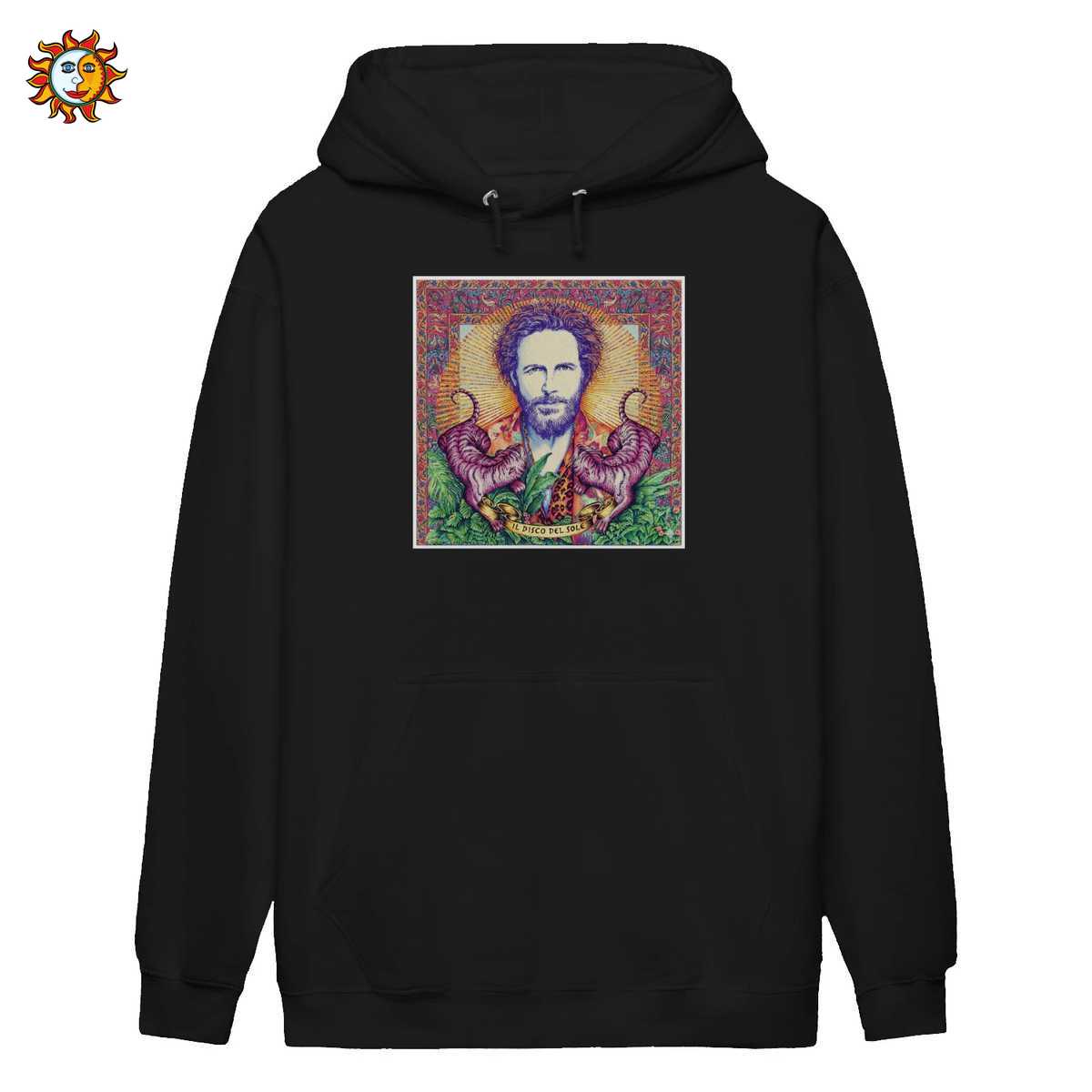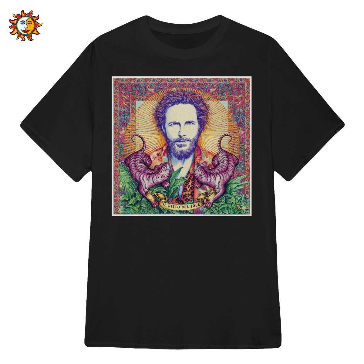 La grafica di questa maglietta è un omaggio visivo all’album ‘Il Disco Del Sole’ di Jovanotti, fondendo elementi psichedelici, pop art e uno stile fumetto vintage. Al centro, Lorenzo Cherubini è ritratto come un’icona solare, circondato da tigri e natura lussureggiante, catturando l’energia esplosiva della sua musica.